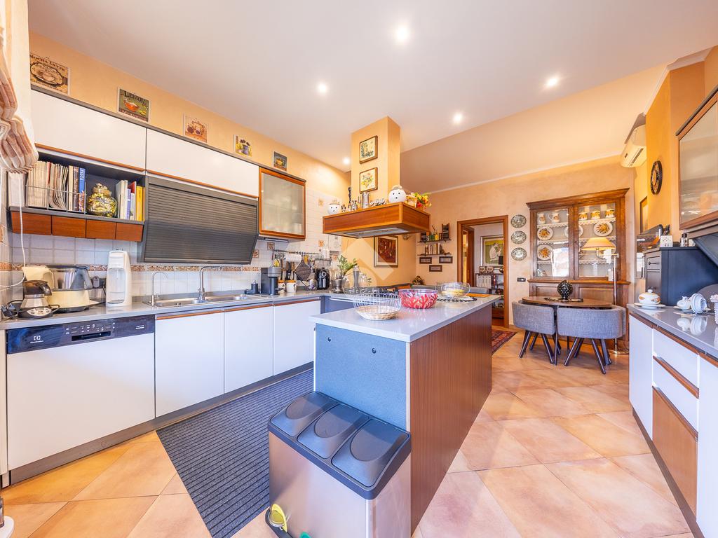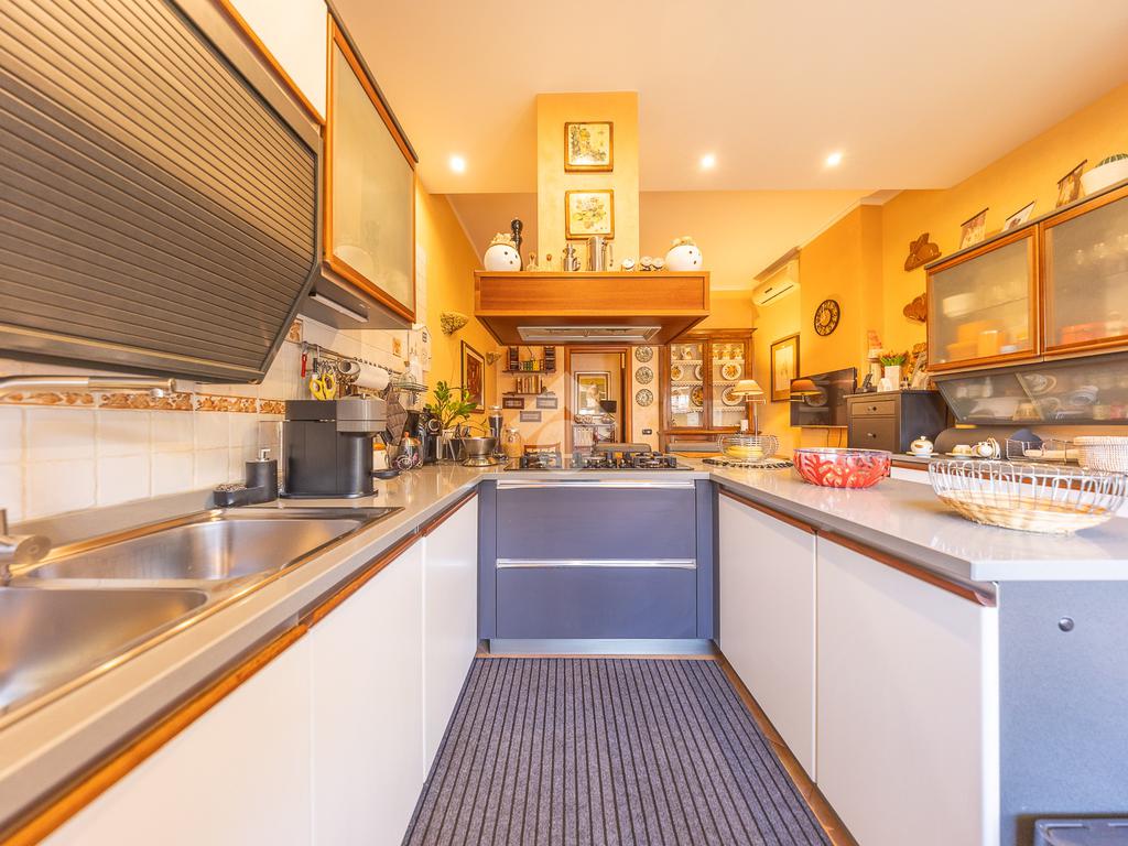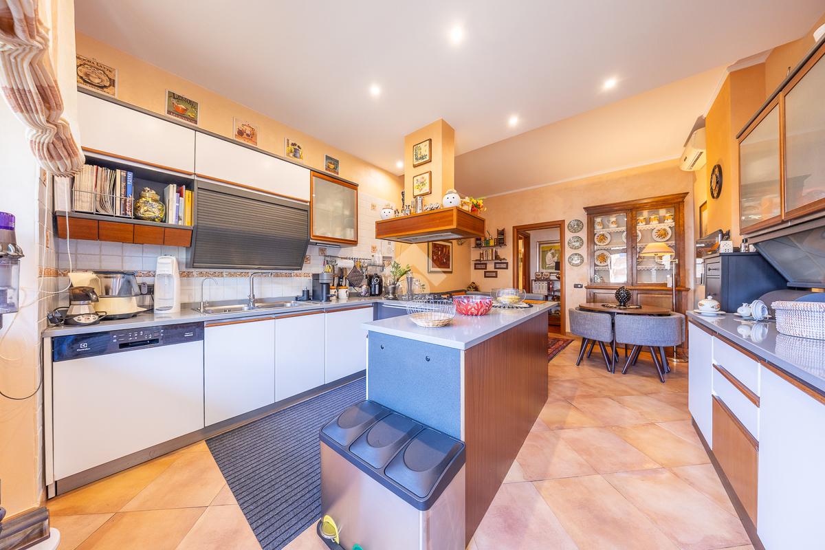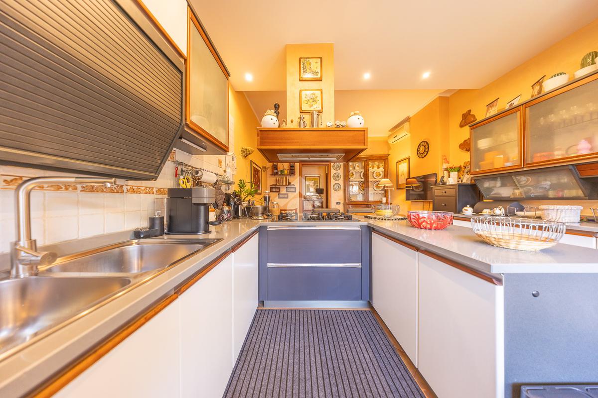 La zona giorno si compone di salone doppio affiancato da una spaziosa cucina abitabile.