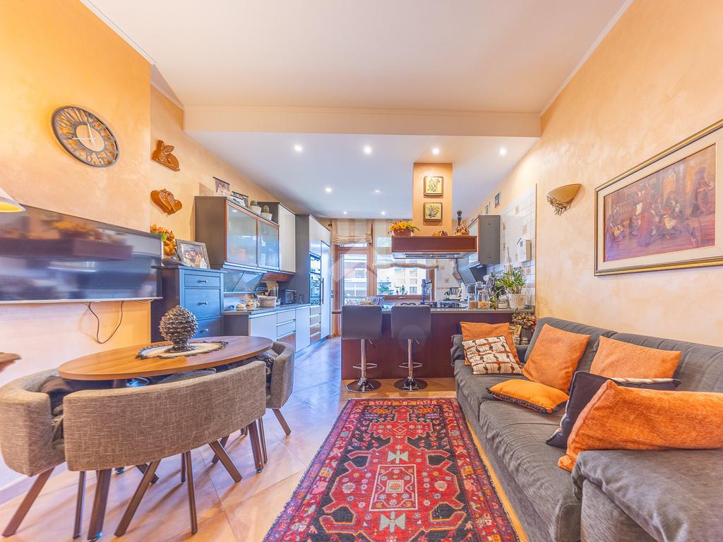 Il vero punto di forza dell’appartamento è lo splendido terrazzo vivibile di circa 50 m², un autentico spazio outdoor di pregio, accessibile da quasi tutti gli ambienti interni principali, pensato per momenti di relax e convivialità all’aperto.
