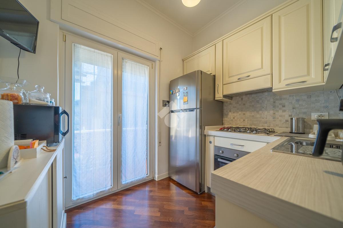 L’immobile si presenta in ottimo stato ed è composto da ampio ingresso, soggiorno con accesso al primo balcone, cucina semi-abitabile con ulteriore spazio esterno adibito in parte come zona lavanderia, due camere da letto matrimoniali e bagno finestrato con box doccia.